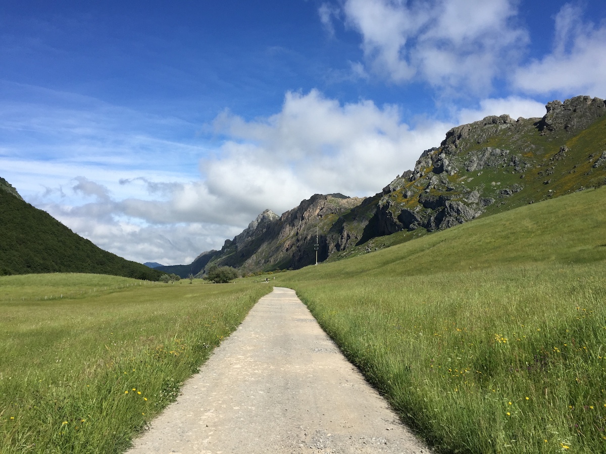 Al llegar al pueblo, te encuentras con una zona de aparcamiento bastante amplia donde es aconsejable dejar el coche. El primer paso es cruzar el pueblo, debemos seguir la pista que transcurre entre prados hasta llegar a una bifurcación con dos indicaciones, una, hacia los lagos de saliencia (esta ruta es parte de otra más grande) y otra hacia el Lago.